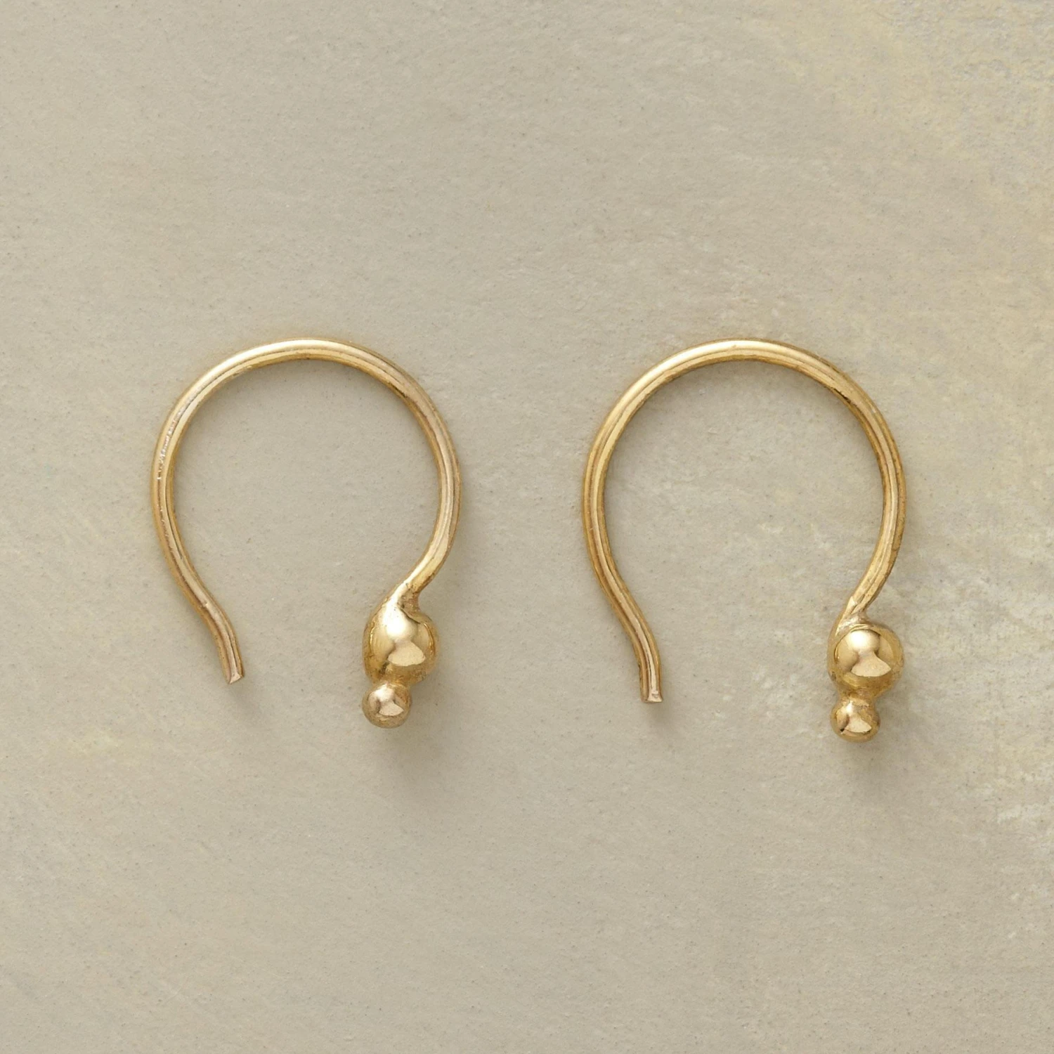 Larger-than, smaller-than granulation beads are pretty punctuation on the petite hoop wires of these double dot gold bead earrings. Sundance exclusive in 18kt gold plate. 7/16″L.