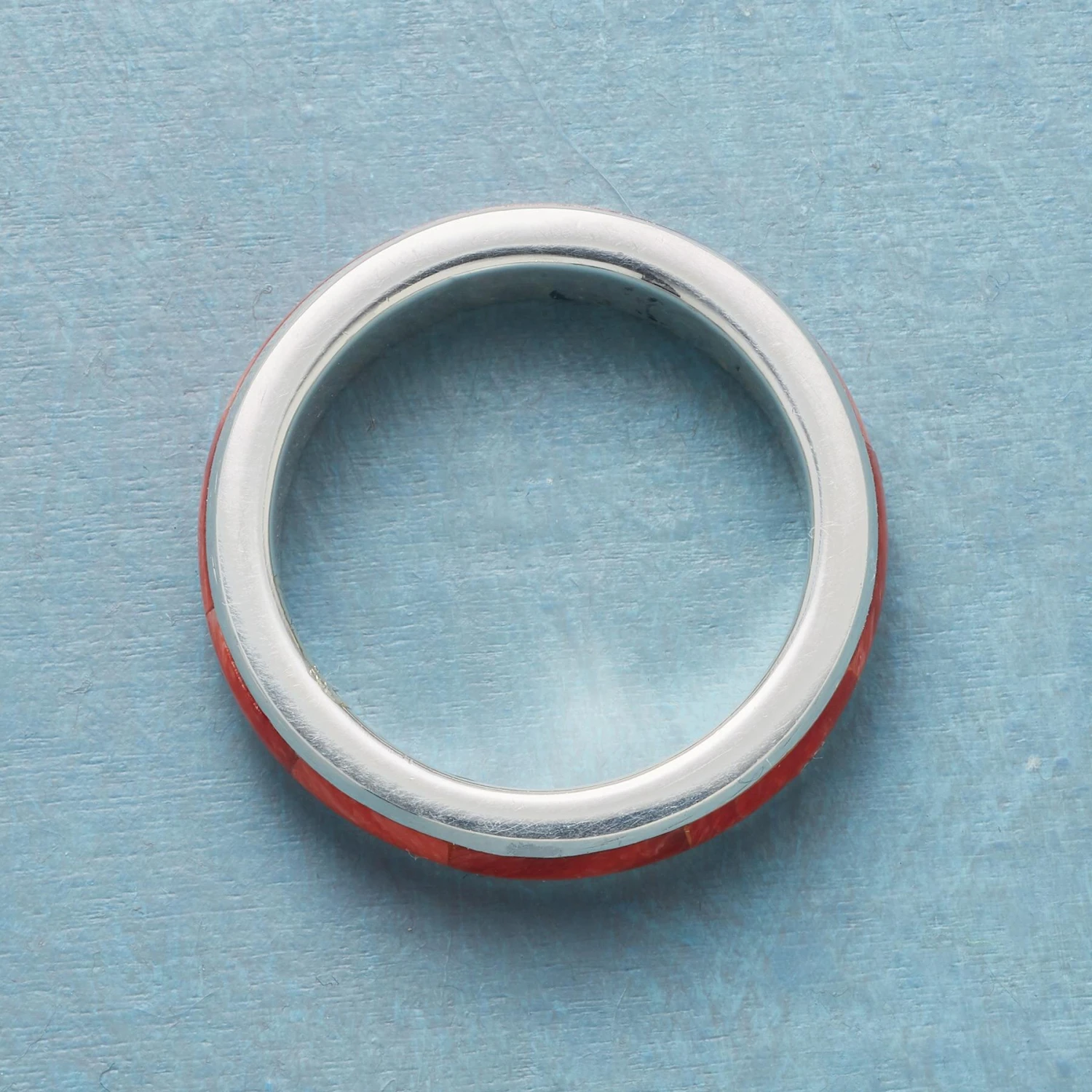 A blaze of inlaid spiny oyster shell circumnavigates a handcrafted band of shiny sterling silver. Exclusive. Whole sizes 5 to 9.