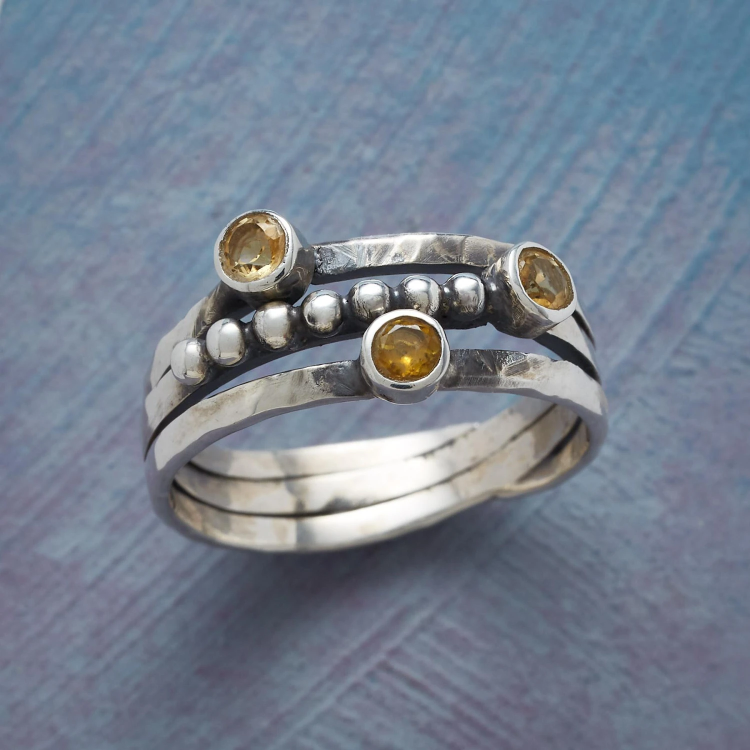 Sunny citrine sparkles alongside sterling silver bubbles on a sterling silver ring cast by hand. Imported. Exclusive. Whole sizes 5-10.
