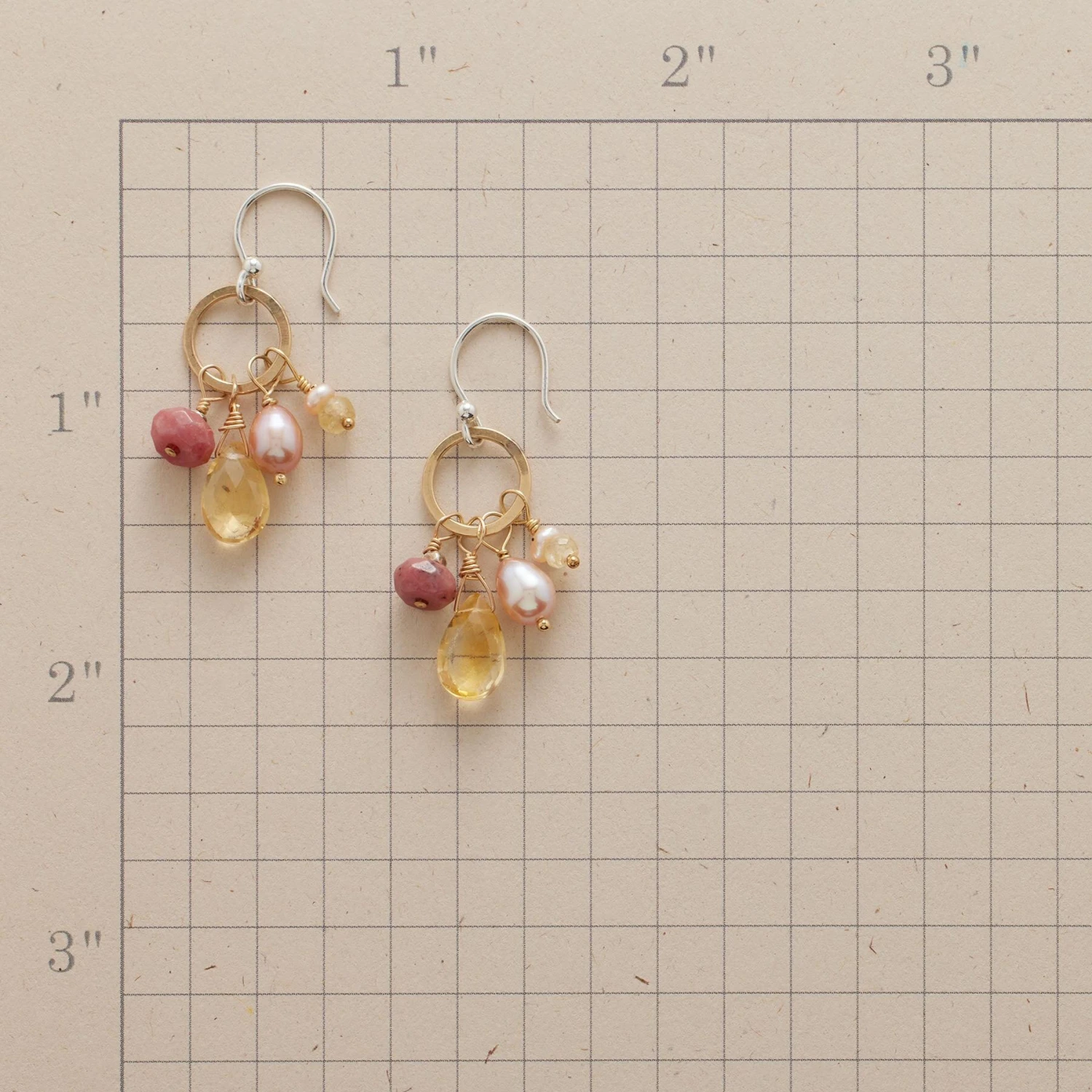 Pearl’s smoothness contrasts with faceted citrine and rhodonite… 14kt gold-filled hoop and headpins, cultured pink pearl, Thai silver accent bead, sterling silver French wires. Exclusive. Handmade in USA. Approx. 1-1/2″L.