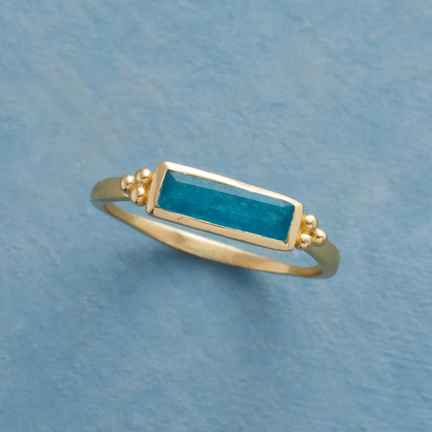 Regal yet exceptionally refined, our slim 14kt gold vermeil band holds a deep green jade baguette braced between trios of polished beads. Handcrafted. Exclusive. Whole sizes 5–9.