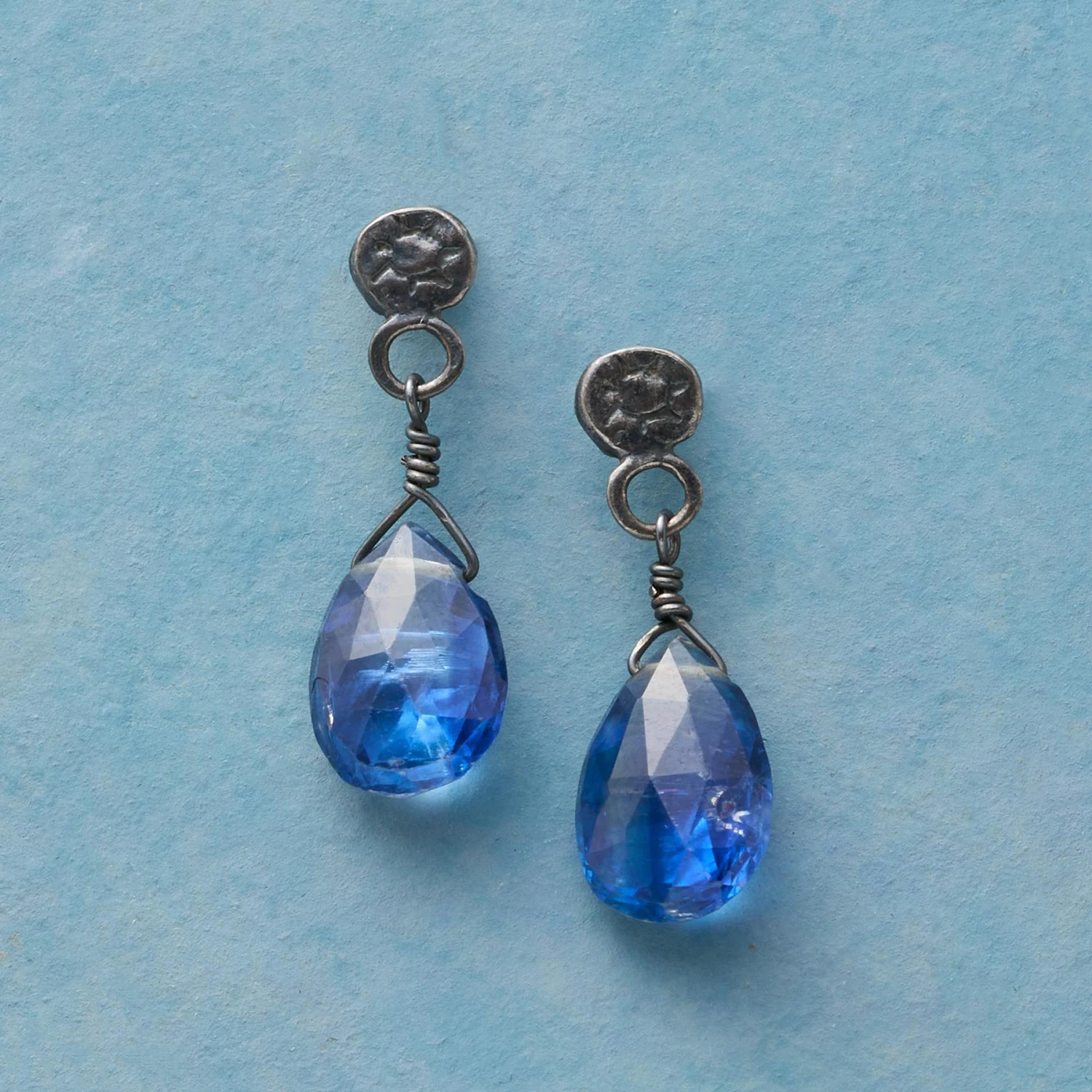 Kyanite droplets swing from sterling silver suns in Jes MaHarry’s bejeweled salute to water’s significance in nurturing earth’s flora and fauna. Posts. Handmade in USA. Exclusive. 3/4″L.