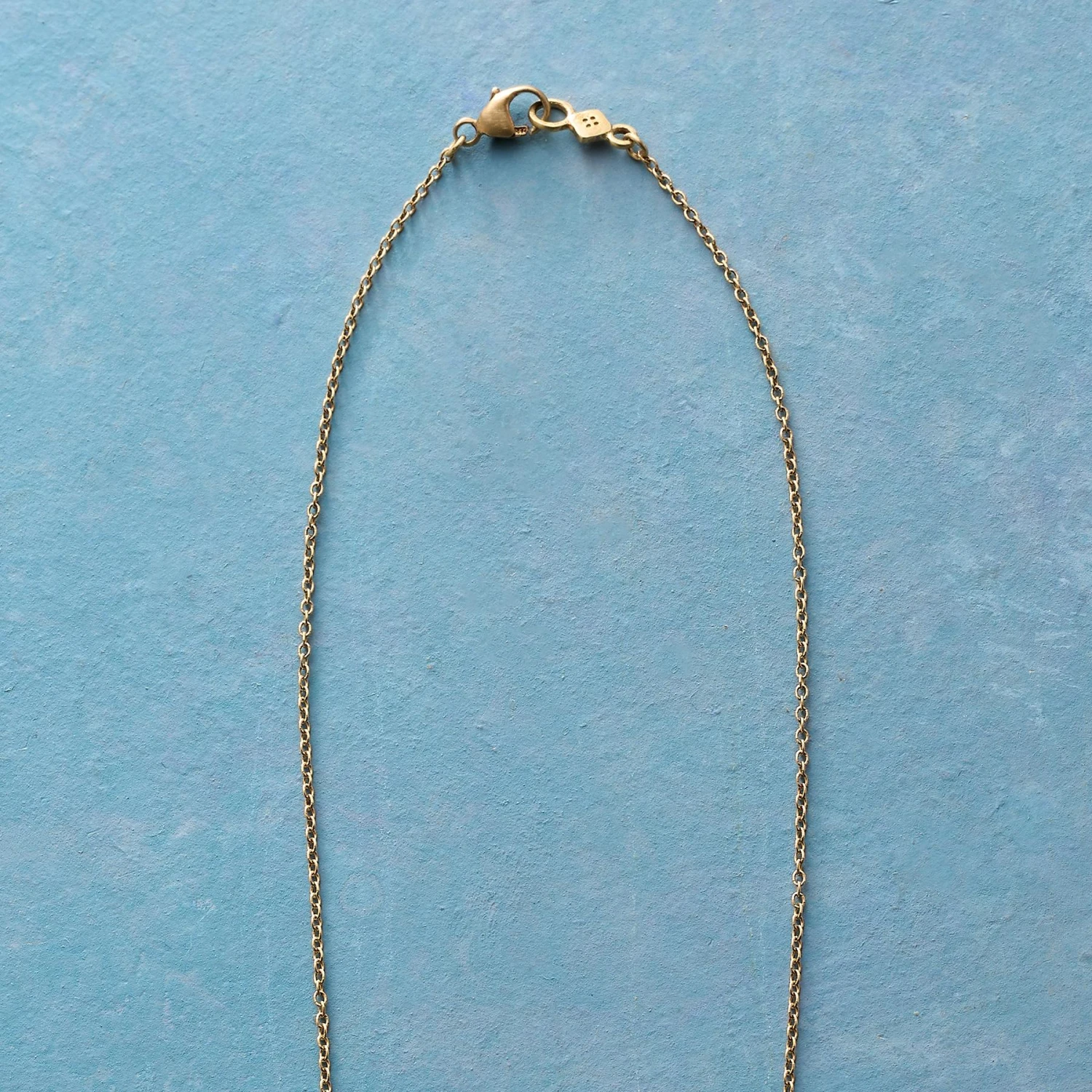 Diamond and aquamarine glints catch the light on this exquisitely handcrafted and delicately detailed 18kt gold pendant by Adel Chefridi. The pendant hangs upon a 18kt gold chain with a lobster clasp. Made in USA. 16″L drop.