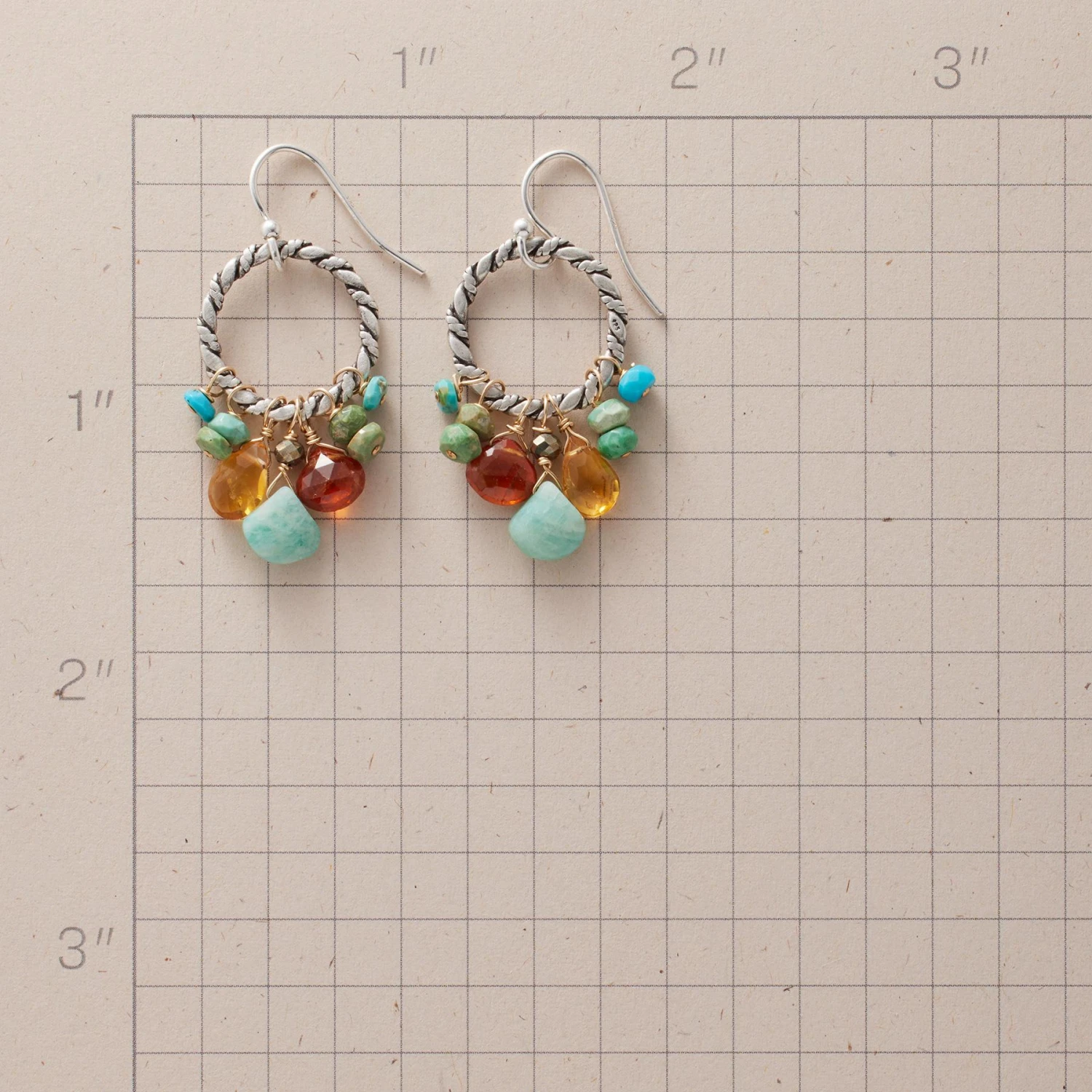 Loops of rope-twisted sterling silver lasso a bevvy of gems, including hessonite garnet, citrine, pyrite, amazonite and both natural and enhanced turquoise. Sterling French wires. Handcrafted in USA. Exclusive. 1-1/4″l.